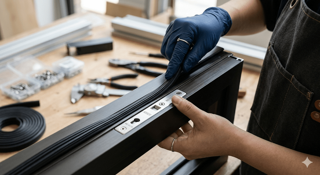 Once the pieces are cut, they move to assembly. Unlike shops that only use screws, our custom window factory uses heavy-duty corner cleats. We also use specialized glue for extra strength. A hydraulic machine then presses the corners together. Consequently, this creates a solid joint that will not sag. After that, we install EPDM rubber seals. These gaskets provide the ultimate defense against rain. Because we use EPDM, the seals do not crack in the sun.